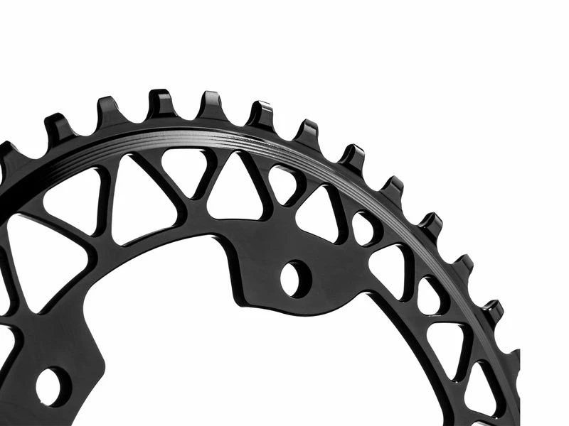 Partant du constat que la force de pédalage n’est pas la même en fonction de la position des manivelles, Absolute Black a développé des plateaux ovales qui permettent de diminuer la force nécessaire au pédalage lorsque normalement elle est la plus élevée, et de l’augmenter lorsque normalement elle est plus faible. Le ressenti est donc une impression de pédalage plus « rond », et plus régulier.