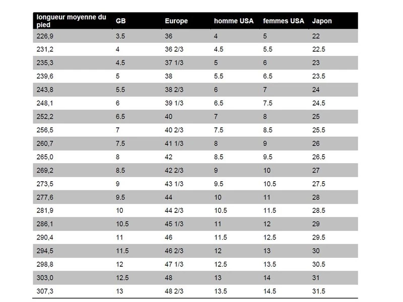 Infos sur les tailles ICI