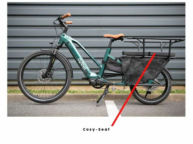 Le coussin Cosy Seat de O2Feel s’installe facilement sur le porte bagages du Cargo O2Feel grace au système MIK. Le Cosy Seat vous permet de transporter un enfant et il peut être couplé soit à un siège bébé soit à un autre Cosy Seat pour le transport d’un deuxième enfants sur le O2Feel Cargo.