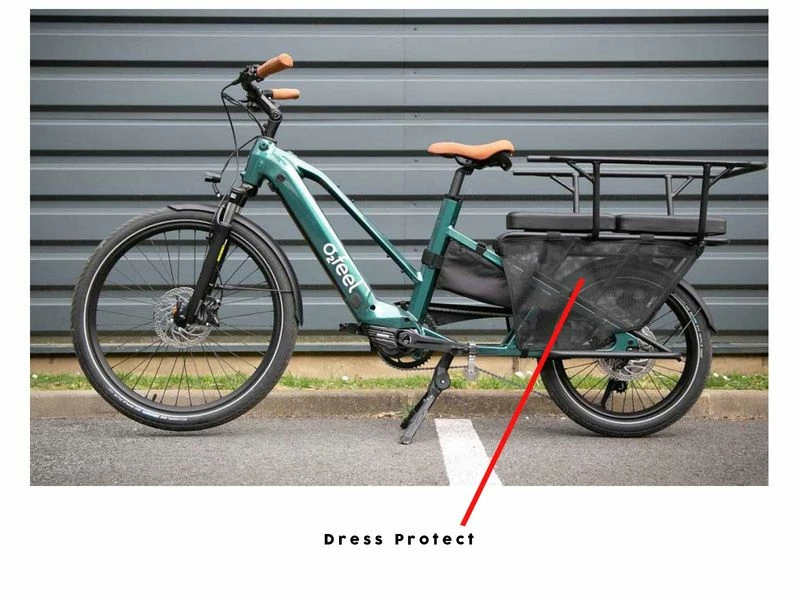 La protection O2Feel Dress Protect protège les passagers et les bagages de la roue arrière. Fixation facile par scratchs. Compatible avec le O2Feel Cargo .