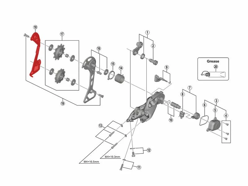 La chape interne Shimano pour dérailleur arrière 11 vitesses SLX M7000 est en acier et est disponible en version GS.