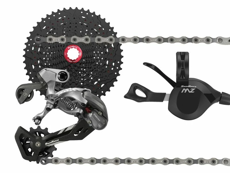 Ce mini groupe Sunrace 1×12 vitesses est composé du dérailleur 12 vitesses MX60, de la cassette MZ90 11-50, du shifter MZ30 de la marque et d’une chaine Sram NX Eagle 12 vitesses. Proposé à un tarif ultra compétitif, il vous permettra de passer au 1×12 vitesses sans vous ruiner. Ce groupe est uniquement compatible avec les roues équipées d’un corps de roue libre standard (type Shimano 9-10-11 vitesses)